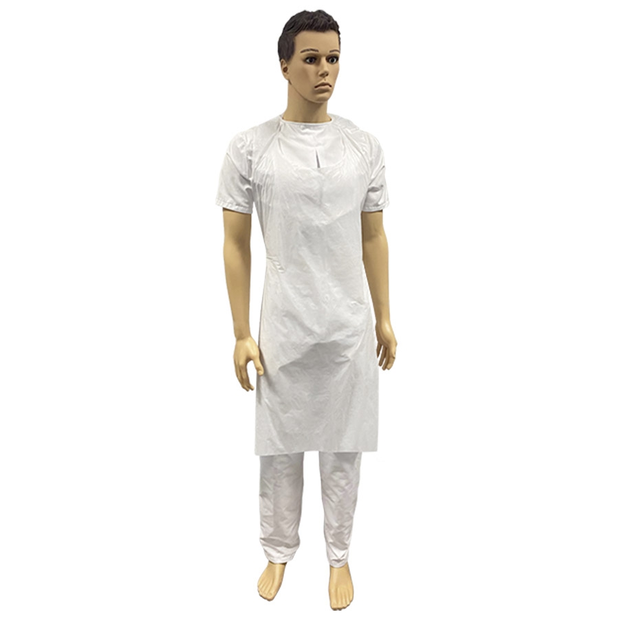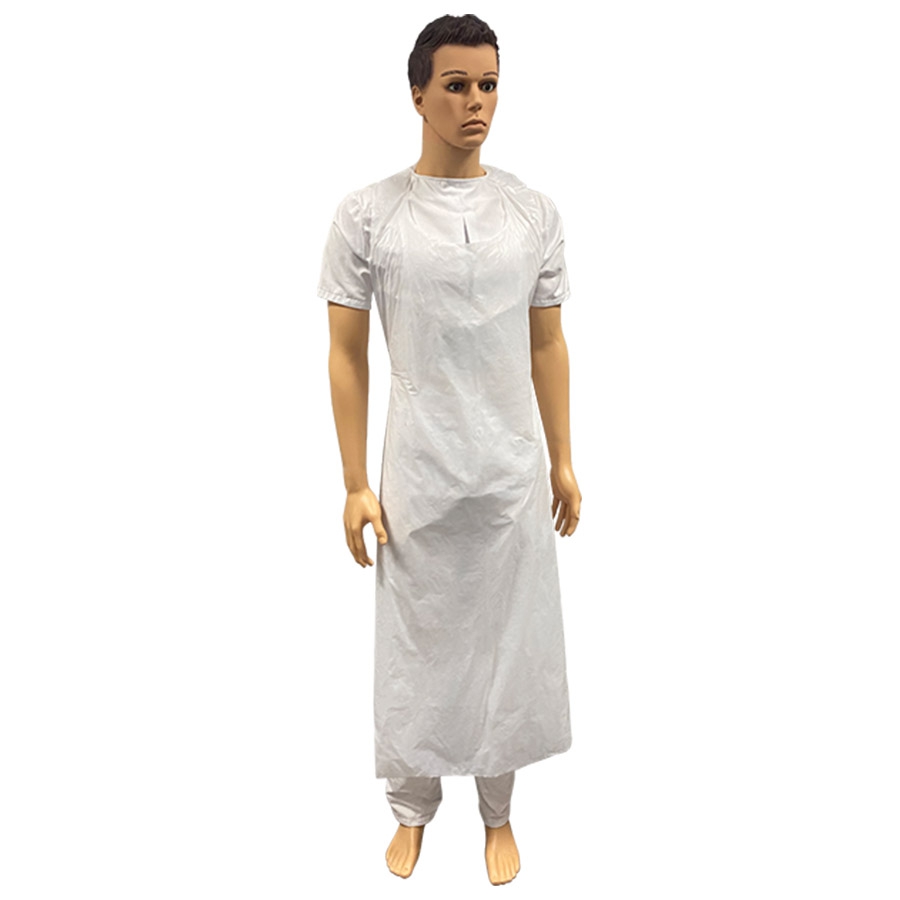 Tablier en polyéthylène transparent, destiné à une bonne protection du tronc et des jambes, tant dans le domaine médical qu’industriel ou alimentaire.