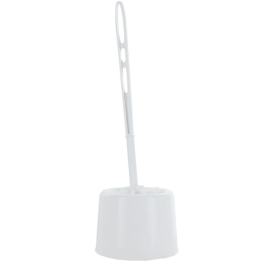 Le combiné WC comprend un pot et une brosse en plastique blanc. C'est un élément indispensable au nettoyage efficace des toilettes.