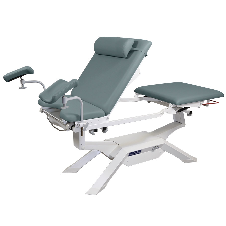 Avec ses 3 parties, dont un dossier central inclinable électriquement et un dossier extérieur réglable par double vérin à gaz, il peut être utilisé en gynécologie, mais également en consultation de médecine générale.