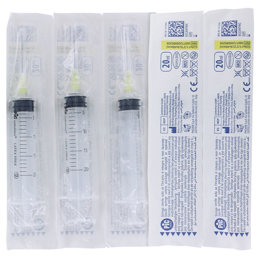 Ces seringues montées PIC sont destinées aux injections ou aux prélèvements (selon l'aiguille choisie). Stériles jetables, apyrogènes et non toxique, elles sont équipées d'un joint en caoutchouc triple contact avec blocage du piston pour prévenir des fuites accidentelles pendant l'aspiration.