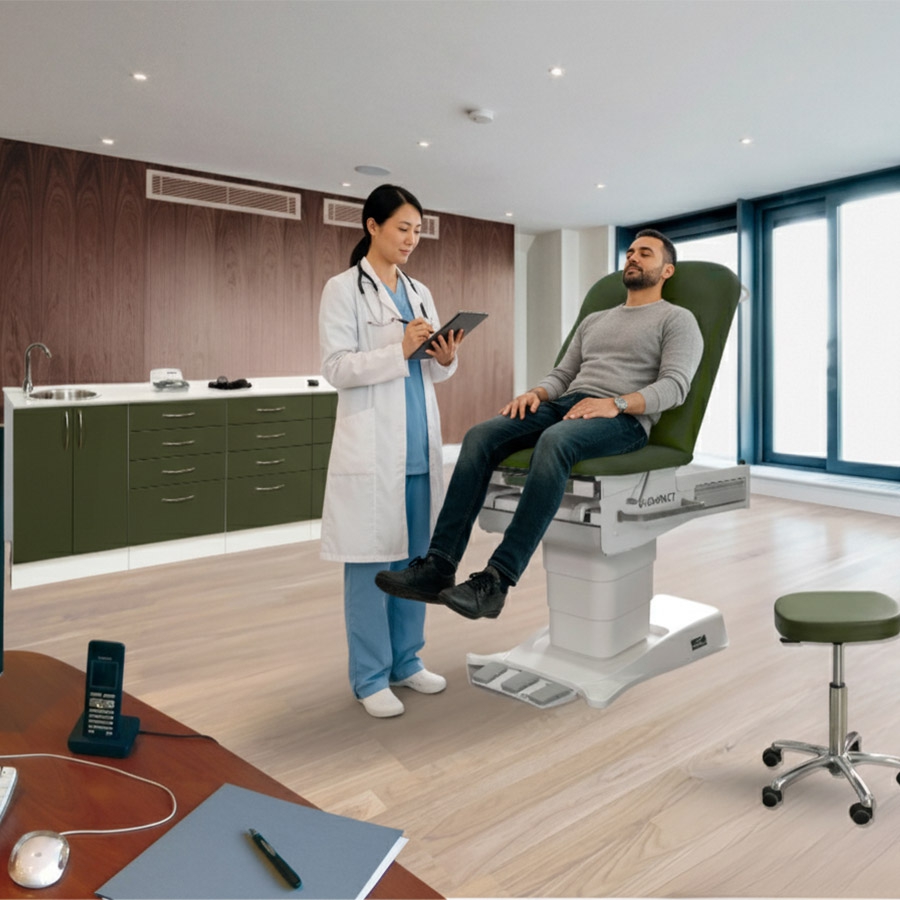 Avec son encombrement réduit, ses nombreux accessoires intégrés, sa simplicité d'utilisation et sa polyvalence, ce fauteuil de consultation d'1m3 est un réel assistant pour le patient mais aussi pour le praticien. Il convient parfaitement pour la médecine générale, la gynécologie, la pédiatrie...