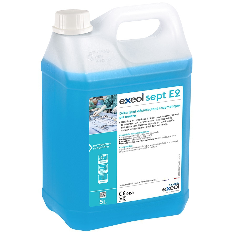 Le détergent désinfectant enzymatique Exeol Sept E2 est une solution de nettoyage et de désinfection spécialement conçue pour les dispositifs médicaux réutilisables, invasifs et non-invasifs.