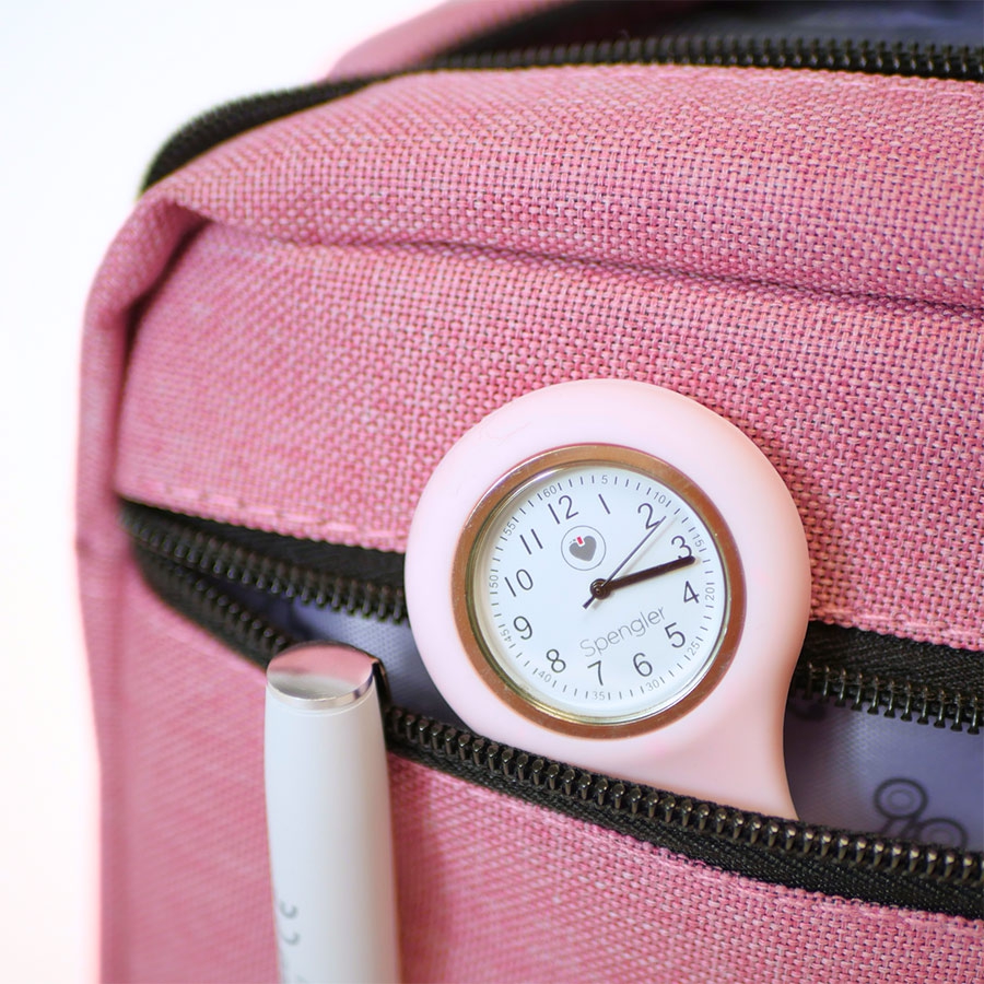 La montre infirmière Spengler, en silicone souple, est un accessoire pratique et élégant, conçu pour vous aider à gérer votre emploi du temps et à prendre les pulsations cardiaques avec précision. Son système d'attache ingénieux permet de la fixer solidement à votre blouse, ajoutant ainsi une touche moderne et stylée à votre équipement professionnel.