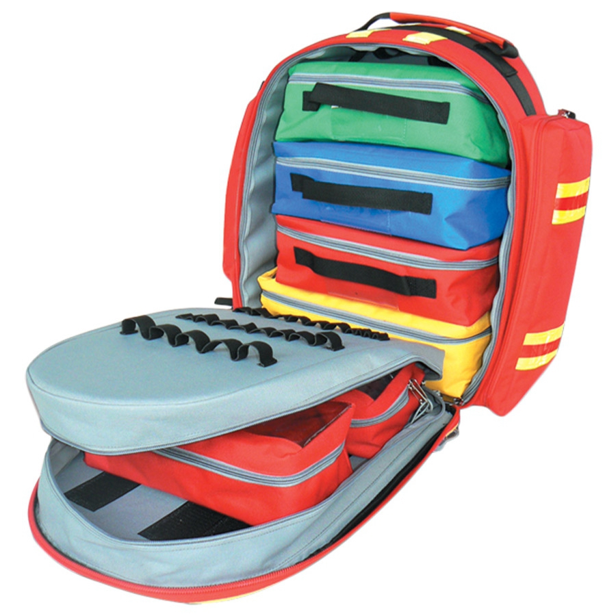 Le sac à dos Logic-2 est équipé de 6 pochettes colorées avec fenêtre transparente et bandes velcro pour un accès rapide aux fournitures. Il dispose également de 2 poches frontales et 2 poches latérales pour un rangement supplémentaire. Les attaches élastiques internes et les bandes velcro permettent de fixer solidement les instruments médicaux, assurant ainsi une organisation optimale pendant les interventions.