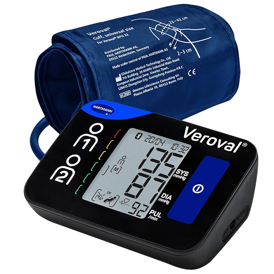 Le tensiomètre Veroval Compact+ est conçu pour être facile à utiliser, avec un écran clair, un indicateur de repos, et une technologie Comfort Air pour des mesures plus confortables. Il dispose de connectivité Bluetooth(R) pour transférer et stocker vos données sur votre smartphone. Il enregistre jusqu'à 200 lectures et fournit des moyennes des valeurs de pression artérielle pour vous permettre de suivre votre évolution de manière détaillée.