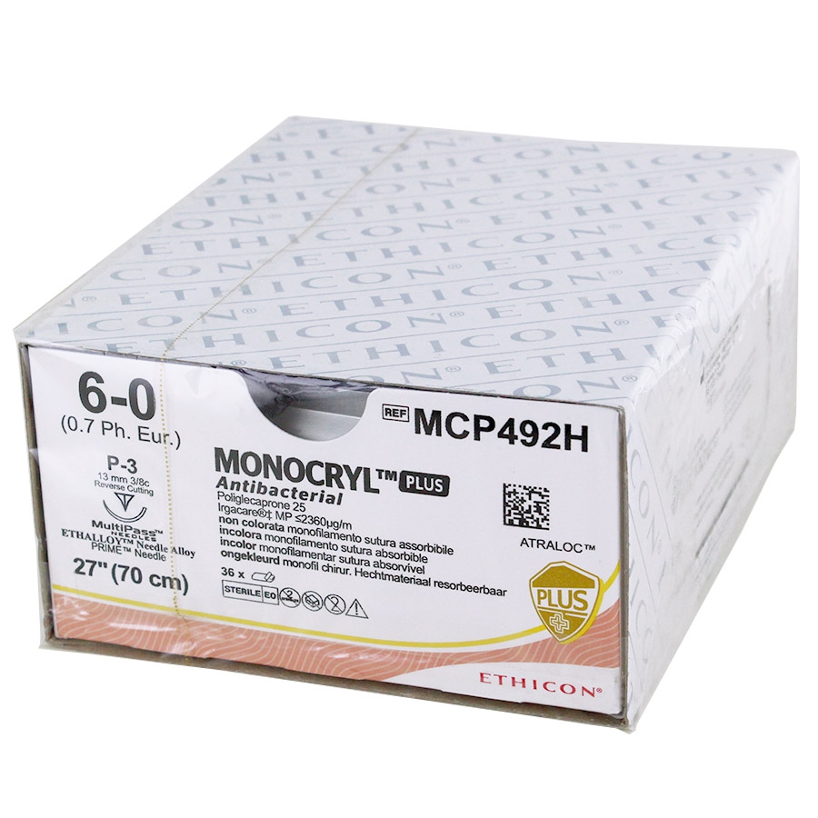 | 832241 | MCP492H | 6-0 | P-3 PRIME MP, 3/8 cercle, triangulaire inversé | 13 mm | 70 cm | Boite de 36 |