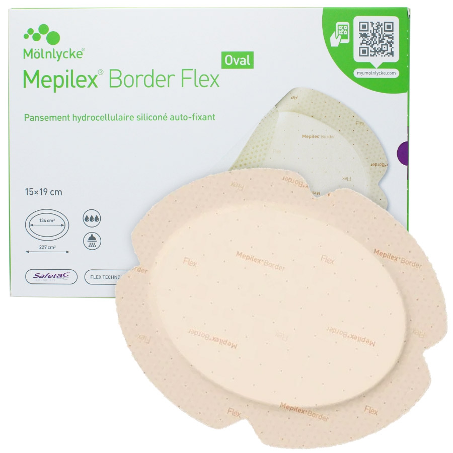 Mepilex Border Flex Oval est un pansement hydrocellulaire tout-en-un flexible et polyvalent, idéal pour le traitement de nombreuses plaies, y compris les escarres, les ulcères de jambe et de pied, ainsi que les plaies traumatiques.