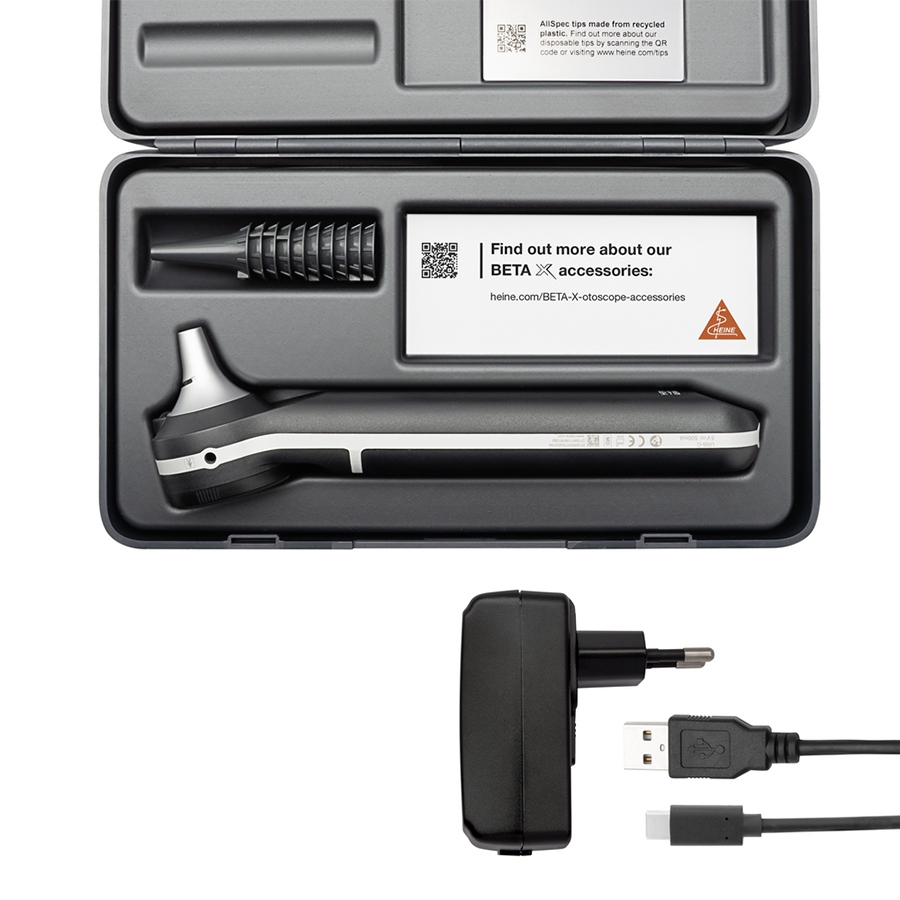 Otoscope HEINE Beta X est le premier otoscope au monde doté d’une lumière d’examen intégrée (HEINE inSPECT) et de modules optiques interchangeables, offrant une précision diagnostique inégalée.