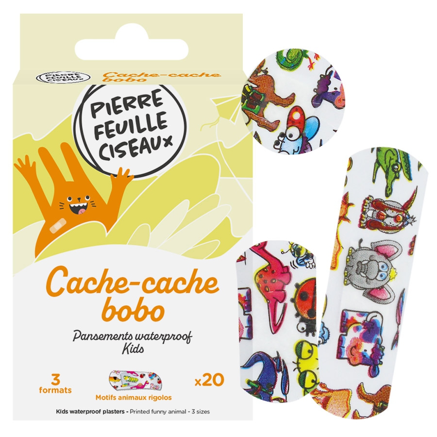 Protégez les petites blessures avec les pansements waterproof kids Pierre Feuille Ciseaux, un assortiment de 20 pansements aux motifs d’animaux amusants spécialement conçus pour les enfants.