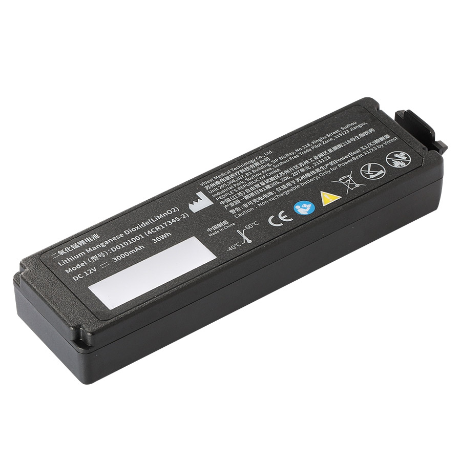 La batterie pour défibrillateurs ViVest Powerbeat X1 et X3 est une batterie lithium-dioxyde de manganèse (Li/MnO2) de 12V, spécialement conçue pour offrir des performances stables et sûres. Non rechargeable, elle garantit une alimentation fiable lors des interventions d’urgence.