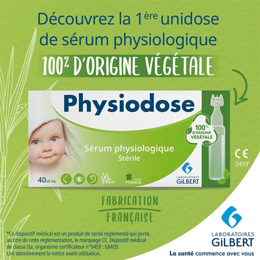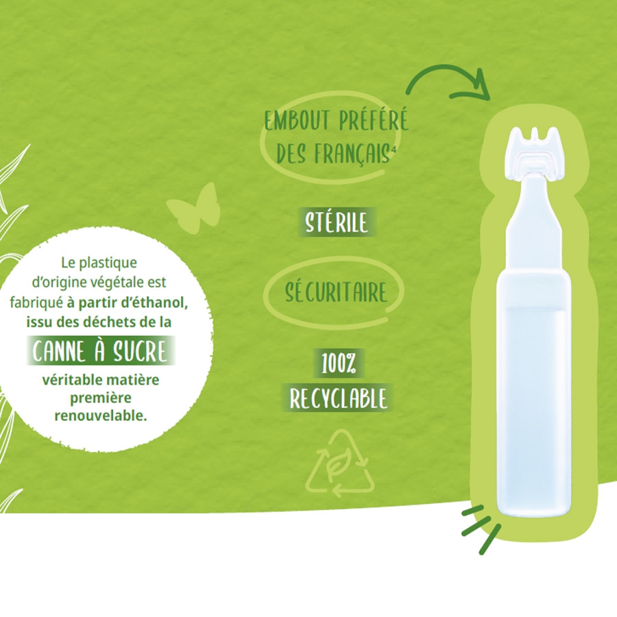 Le sérum physiologique Physiodose Végétal est une unidose 100% d’origine végétale et 100% recyclable, conçue pour limiter l’utilisation de matières fossiles. Fabriqué à partir d’éthanol issu de la canne à sucre, ce dispositif s’inscrit dans une démarche éco-responsable pour préserver la santé des générations futures.