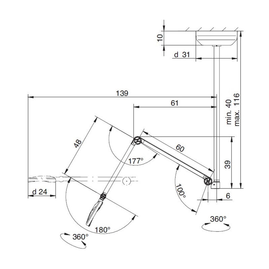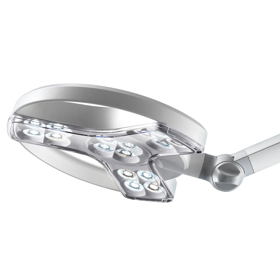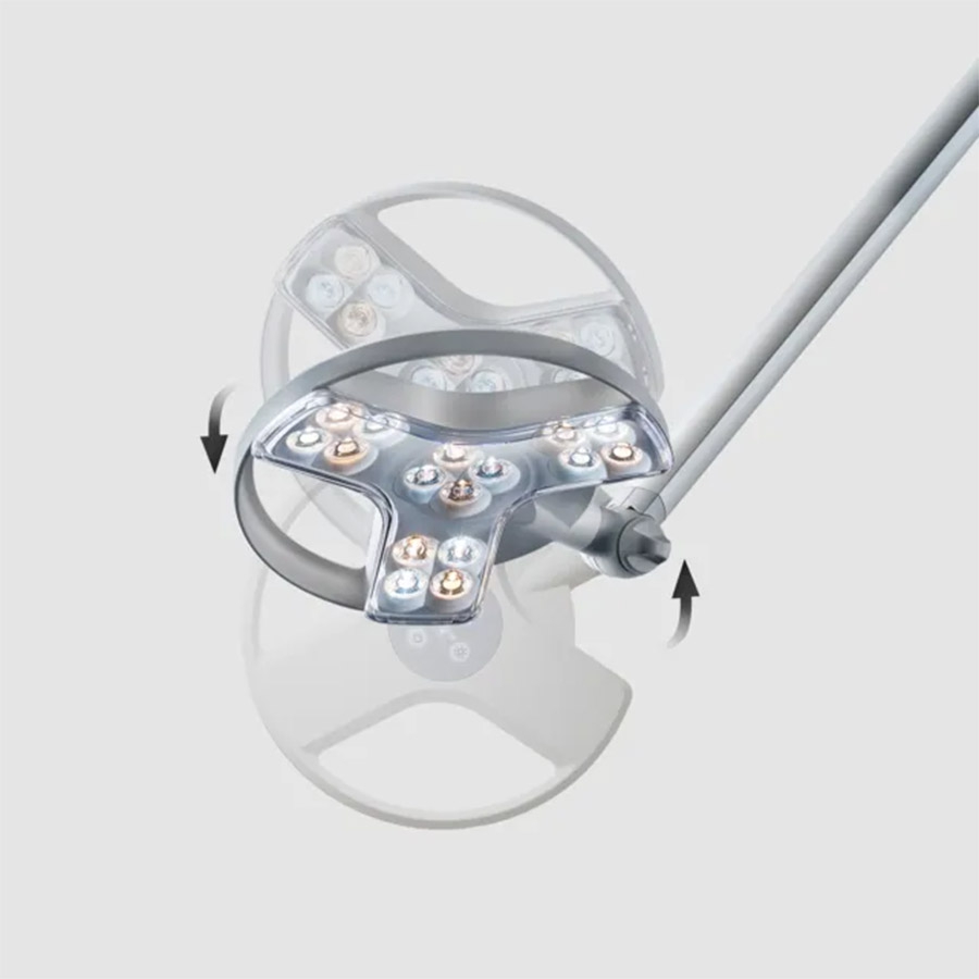 La lampe médicale Derungs est équipée du système de bras Viso, compensé par ressort interne, garantissant un positionnement stable et facile du champ lumineux.