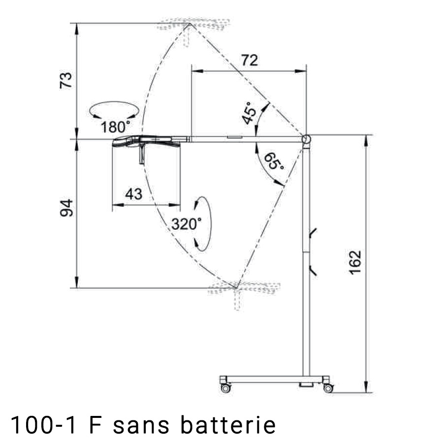 Dotée d’un système de bras unique, la Triango 100-1 F assure un maintien parfait et une grande liberté de mouvement. Sa poignée stérilisable renforce l’hygiène en milieu chirurgical, garantissant des conditions de soins optimales.