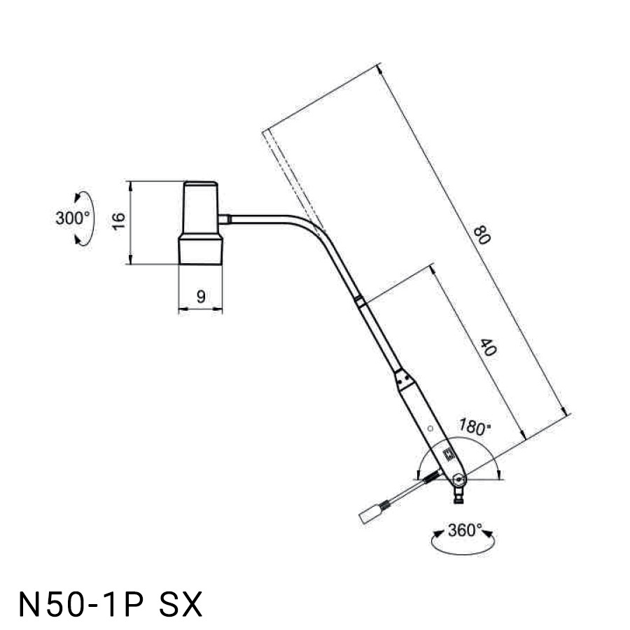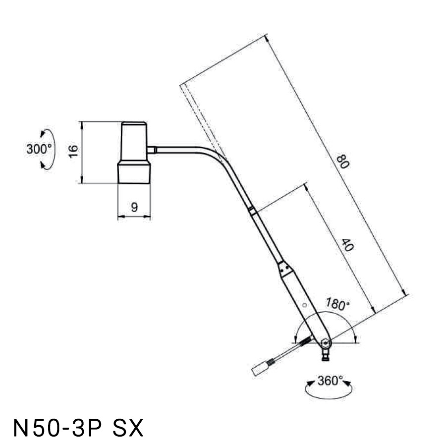Commande : clavier à membrane sur la tête (pour le N50-3) ou interrupteur à bascule (I/0) (pour le N50-1)
