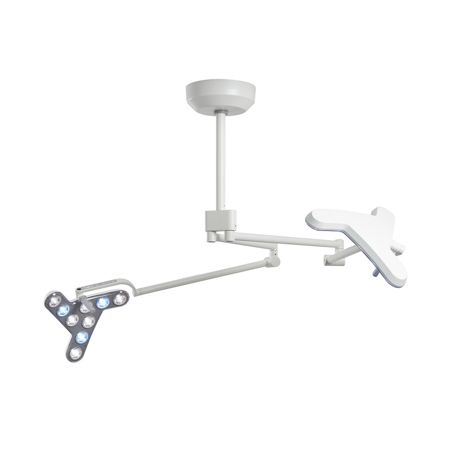 Grâce à sa configuration duo, la lampe permet d’éclairer deux champs de traitement simultanément. Cette conception est idéale pour les blocs opératoires polyvalents, les cliniques esthétiques ou les services hospitaliers réalisant plusieurs gestes techniques à la fois.