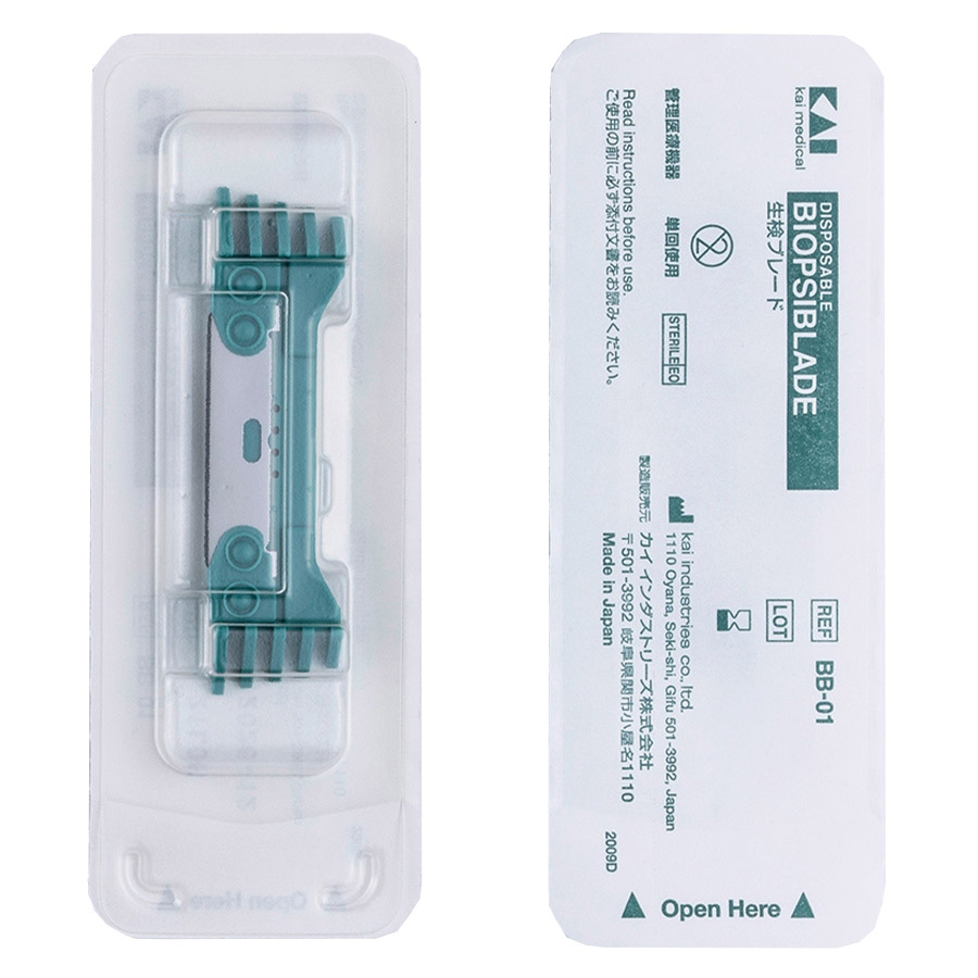 La lame BiopsiBlade Kai Medical est stérile et à usage unique, répondant aux normes les plus strictes en matière d’instrumentation dermatologique. Elle constitue un choix idéal pour les biopsies cutanées thérapeutiques ou diagnostiques, garantissant des résultats fiables et reproductibles.
