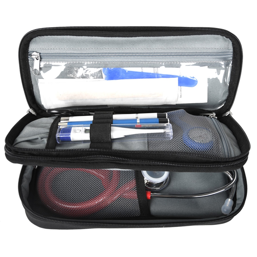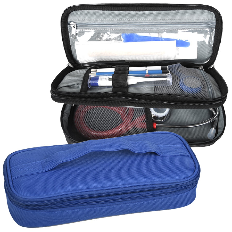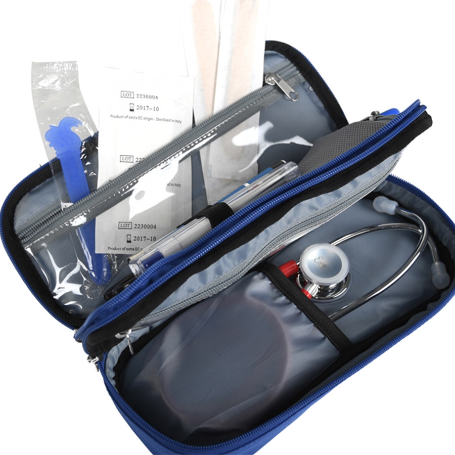 Grâce à sa double fermeture à glissière, l’étui multiusage s’ouvre facilement pour un accès instantané à son contenu. Sa poignée robuste offre un transport confortable, que ce soit en déplacement ou en service hospitalier.