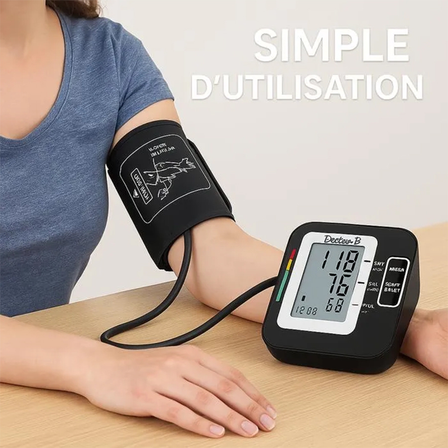 Le tensiomètre Docteur B intègre une détection automatique des battements cardiaques irréguliers, permettant d’identifier d’éventuelles anomalies du rythme cardiaque et d’alerter l’utilisateur en cas de risque potentiel.