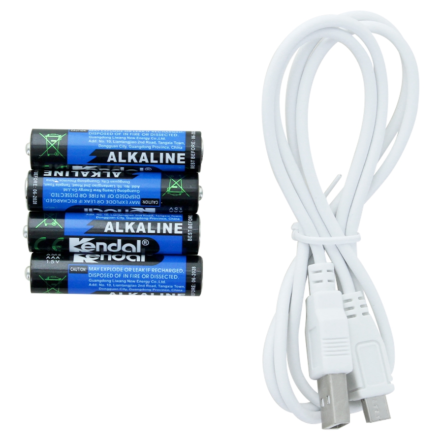 Alimentation : 4 piles AAA (fournies) ou secteur (cable USB)