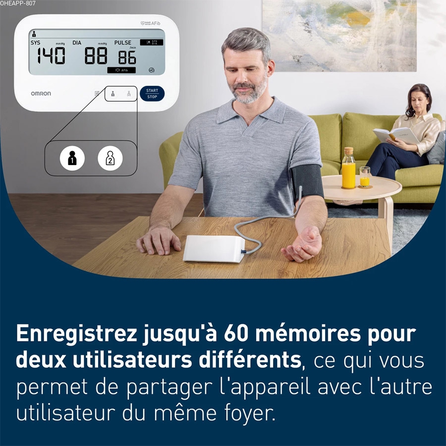 2 utilisateurs + mode invité : 60 mémoires chacun pour un suivi familial structuré.