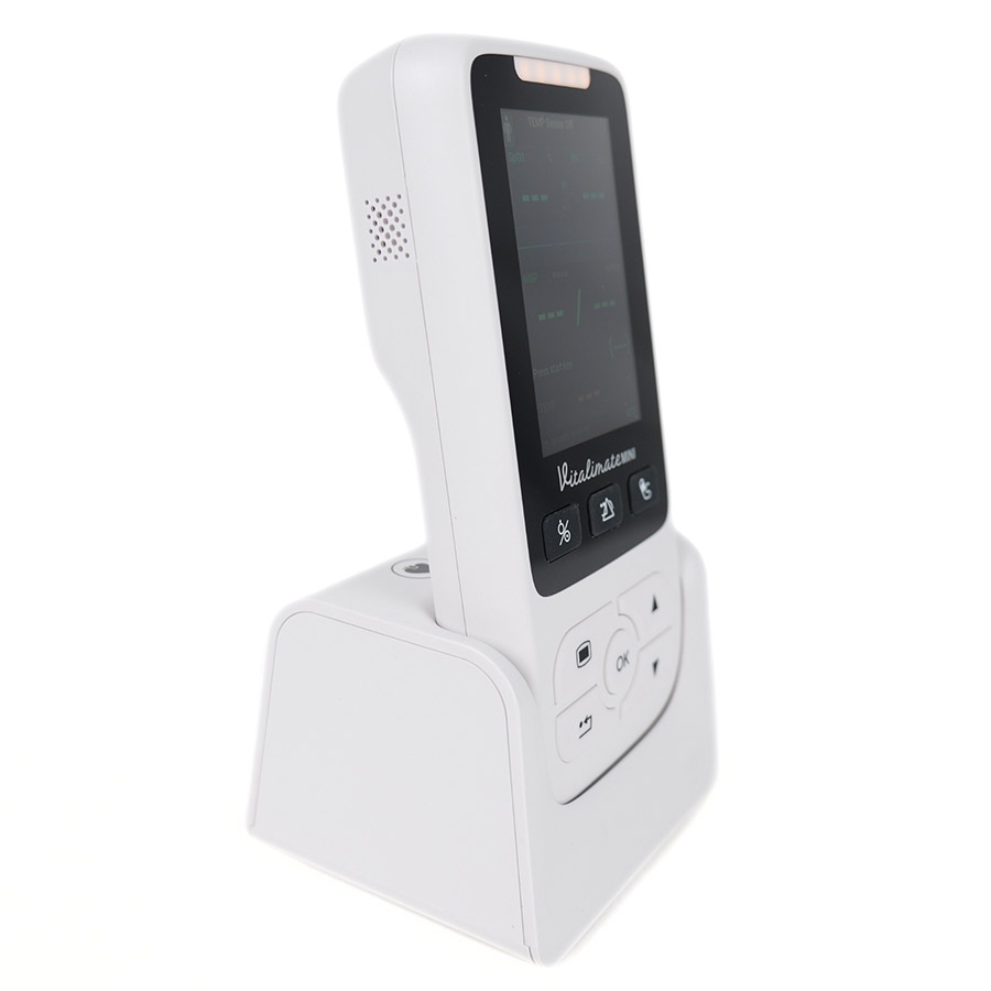 Conçu pour répondre aux besoins des soins mobiles, le Vitalimate Mini offre jusqu’à 12 heures d’utilisation continue sur batterie. Son socle de recharge 2 en 1 permet une recharge simple et sécurisée, tout en servant de station d’accueil pour garder le dispositif toujours prêt à l’emploi.