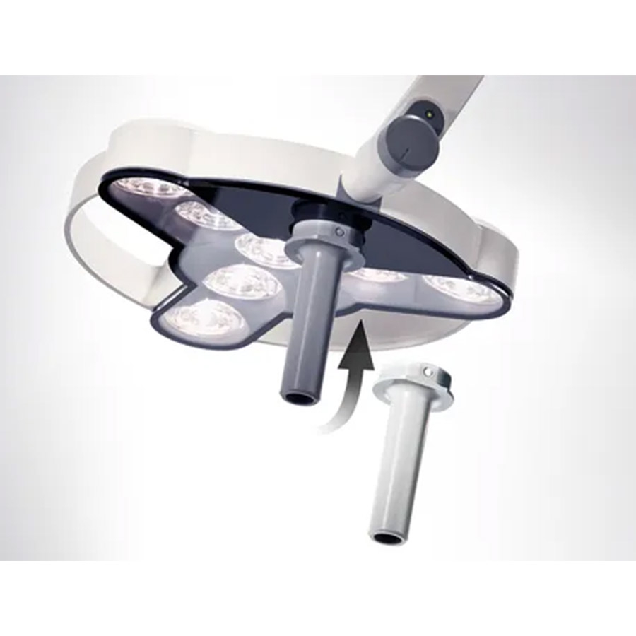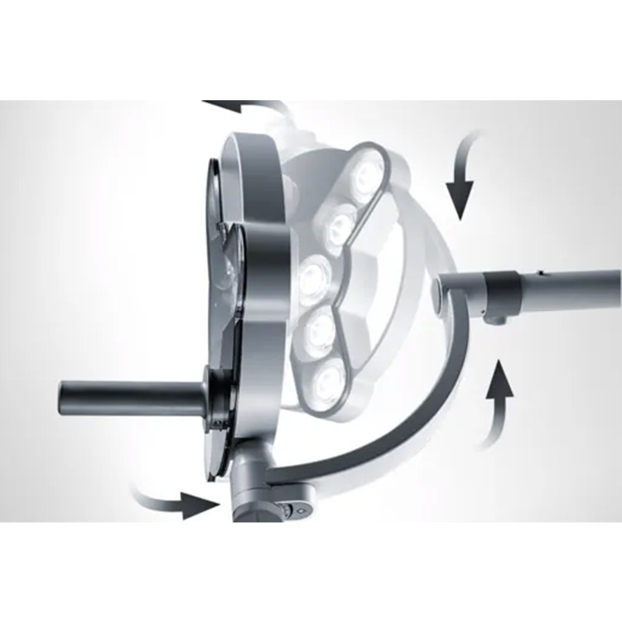 La commande intégrée à la tête du luminaire, via un bouton rotatif intuitif, permet d’ajuster l’intensité lumineuse de manière fluide. L’éclairage est gradable en continu afin d’adapter la luminosité aux besoins cliniques.