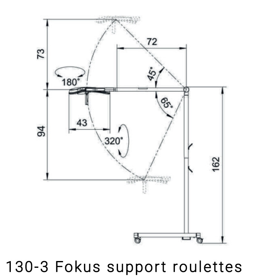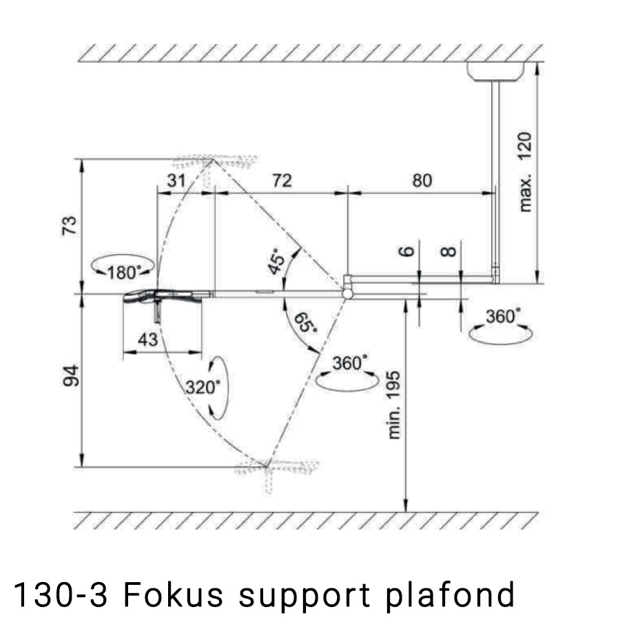 Équipée d’un système de bras unique, la Triango 130 assure un maintien parfait de la position et un large rayon d’action. Sa commande sensitive située près de la poignée permet un réglage simple et rapide, même en situation d’urgence.