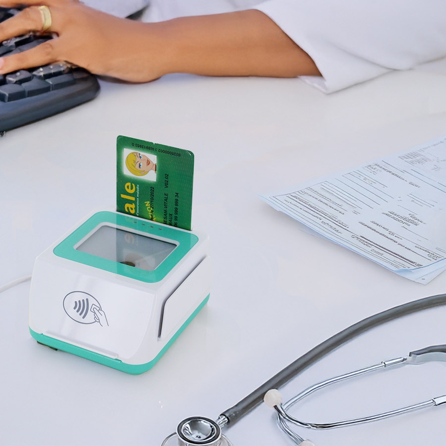 Il assure une lecture rapide et fiable des QR codes issus des cartes e-Vitale, des ordonnances électroniques, des cartes de mutuelle ou encore des certificats de vaccination.