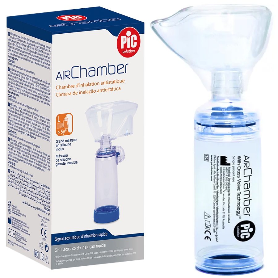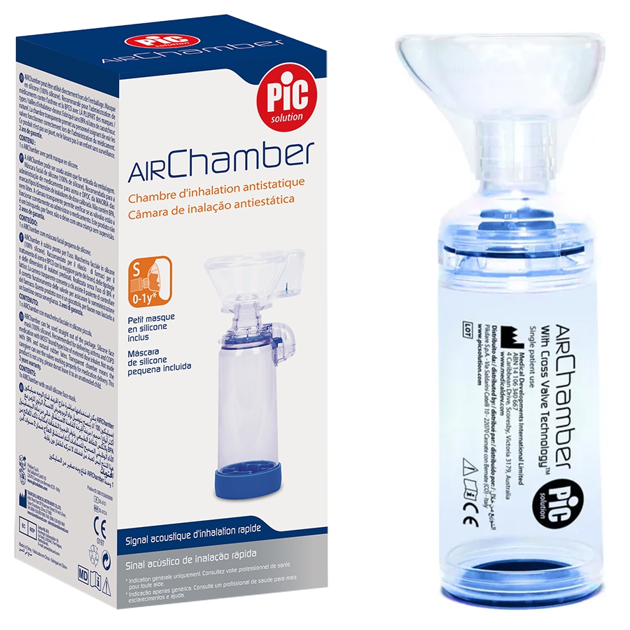 La chambre d'inhalation Air Chamber Pikdare est conçue pour optimiser l’administration des médicaments inhalés dans le traitement de l’asthme et de la BPCO. Elle s’utilise en association avec la majorité des inhalateurs doseurs pré-dosés, facilitant une inhalation efficace et sécurisée.