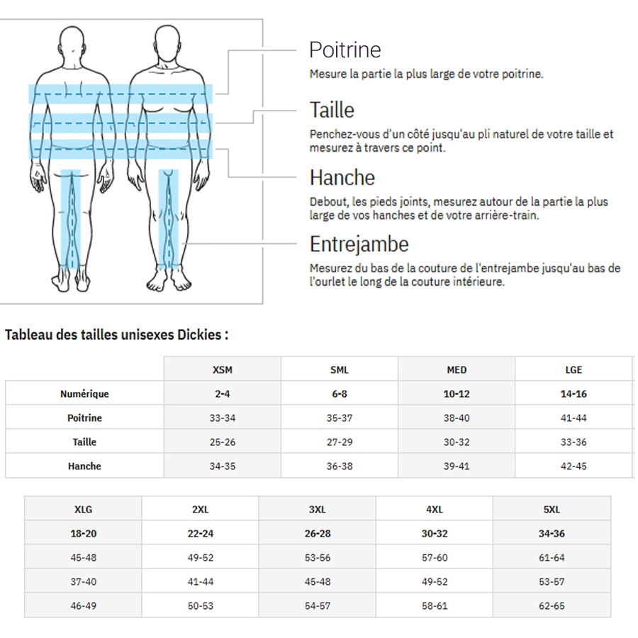 Les tuniques Dickies EDS Signature sont disponibles de la taille XS à XXL