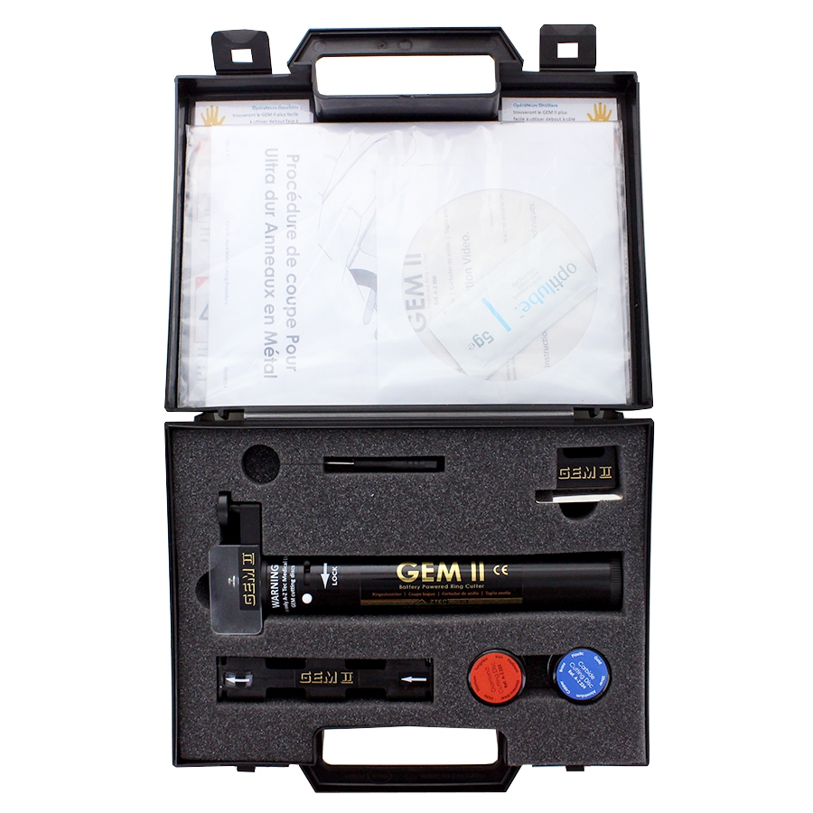 Le coffret coupe-bagues électrique GEM II est un outil professionnel conçu pour retirer rapidement et en toute sécurité les bagues coincées, qu’elles soient en métaux précieux ou très durs.