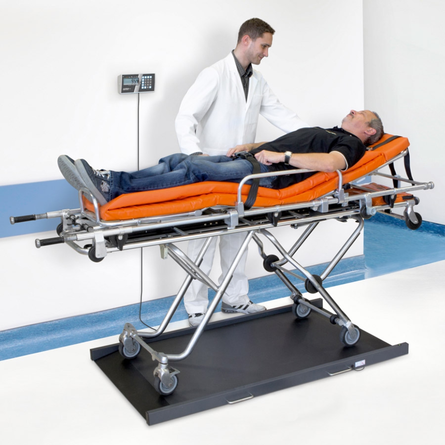 La plateforme surbaissée est accessible des deux côtés, facilitant l’accès pour les patients en chaise roulante, et permet la mémorisation des poids de tare pour un maximum de cinq chaises roulantes électriques. Les grandes dimensions et la large plage de pesée la rendent adaptée aux patients obèses ou sur brancard.