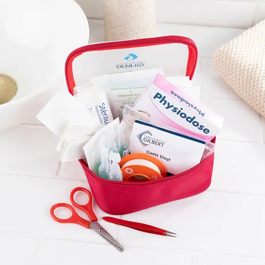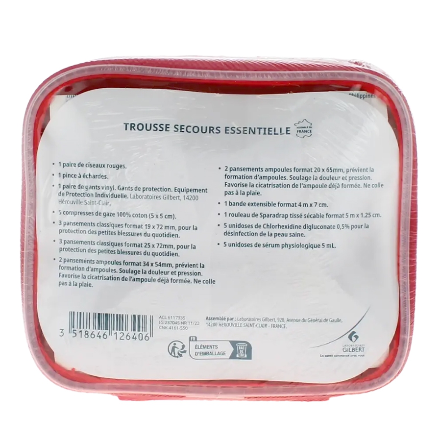Dénomination : Trousse de secours "Essentielle" Premières urgences des Laboratoires Gilbert