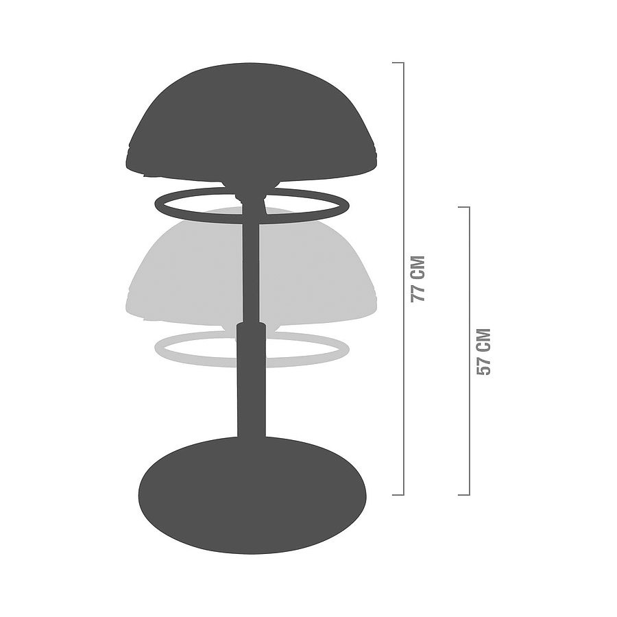 Le tabouret est réglable en hauteur via son anneau (commande sous assise) de 57 à 77 cm.