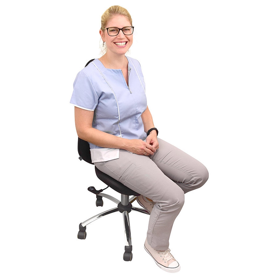 La chaise de cabinet Teqler allie confort, praticité et hygiène pour un usage professionnel quotidien. Son assise rembourrée de 4 cm et son dossier inclinable offrent un soutien optimal pour le dos, tandis que le réglage en hauteur de 43 à 54 cm permet de l’adapter facilement à chaque utilisateur grâce à un levier simple d’utilisation (commande sous assise).