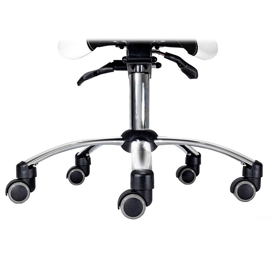 Équipé d’un piètement chromé robuste et de roulettes en PU particulièrement silencieuses avec protection contre la poussière, ce tabouret assure mobilité fluide et stabilité. Avec une capacité de charge maximale de 150 kg, il répond parfaitement aux exigences des cabinets médicaux, centres esthétiques et environnements professionnels.