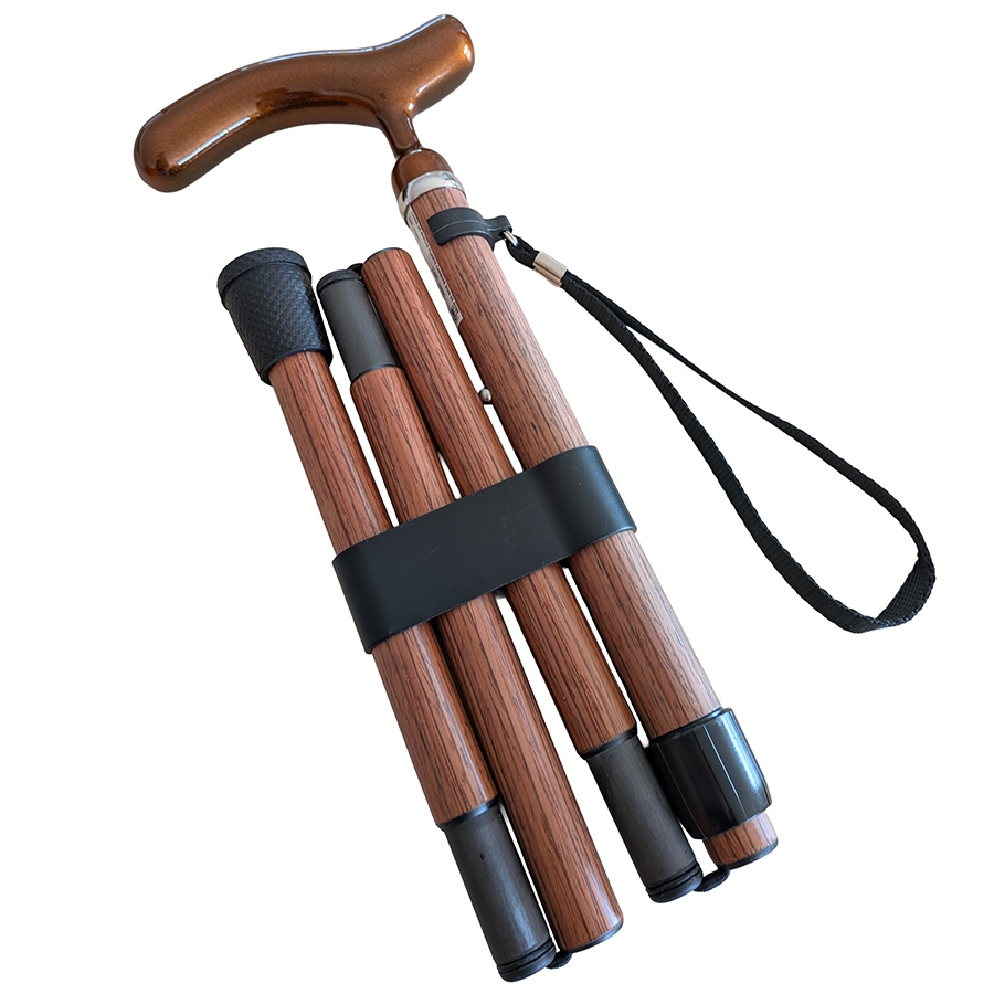 La canne se plie en 4 parties, facilitant son transport et son rangement. Elle est idéale pour les déplacements et les voyages grâce à son format compact.
