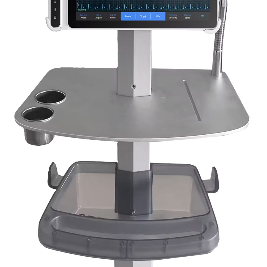 Avec une capacité de charge jusqu’à 25 kg, ce chariot répond parfaitement aux exigences des environnements médicaux pour le transport et l’utilisation d’équipements ECG.