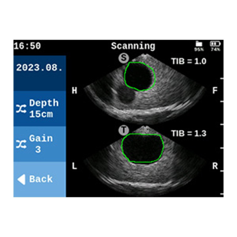 Équipé d’une sonde électronique DualActive sans moteur, le UH10 affiche simultanément les coupes transversales et sagittales. Cette innovation permet une localisation immédiate de la vessie, réduisant les erreurs de positionnement et supprimant tout besoin d’étalonnage périodique.