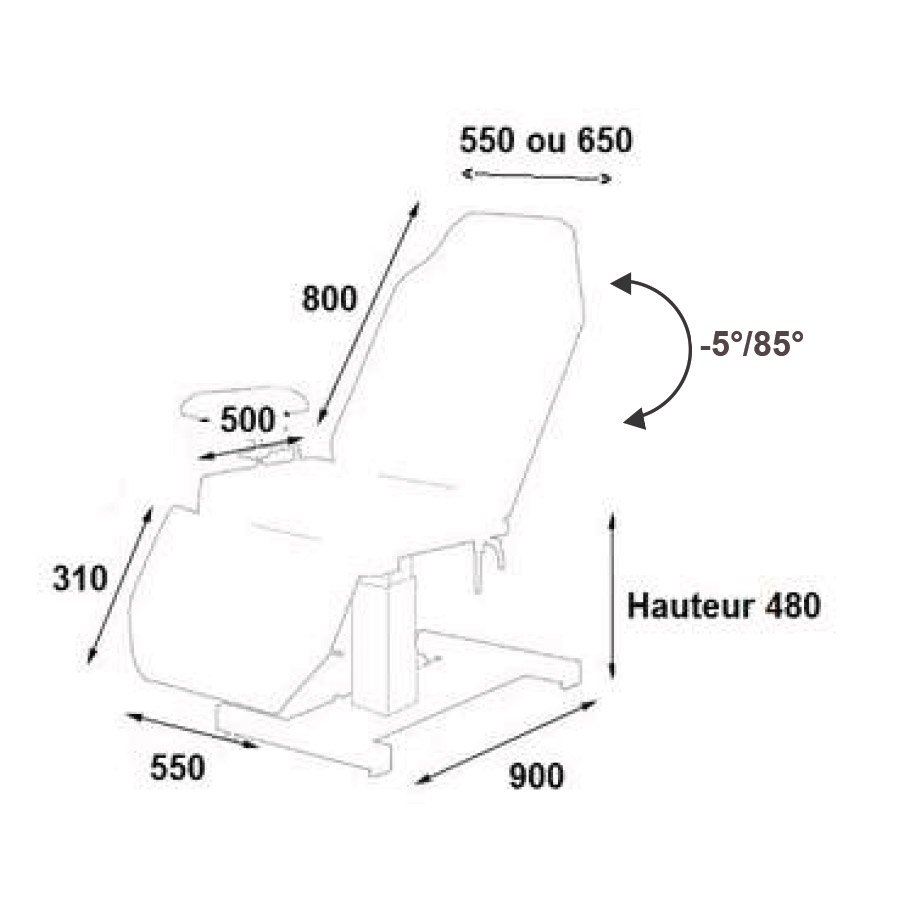 Dénomination : Fauteuil de prélèvement hauteur fixe rotatif sur pied patins Sana Carina
