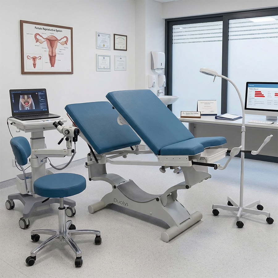 Avec son dossier central inclinable par moteur électrique, des étriers intégrés et un bac amovible, le Duolys est un divan de consultation mixte bien adapté aux médecins généralistes amenés à réaliser des consultations en gynécologie.