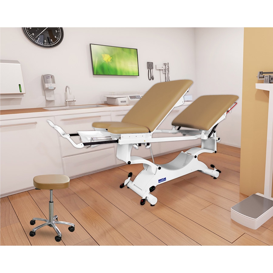 Le Duolys est un divan d'examen électrique polyvalent destiné à des médecins généralistes désireux de pouvoir réaliser des consultations gynécologiques si nécessaire.